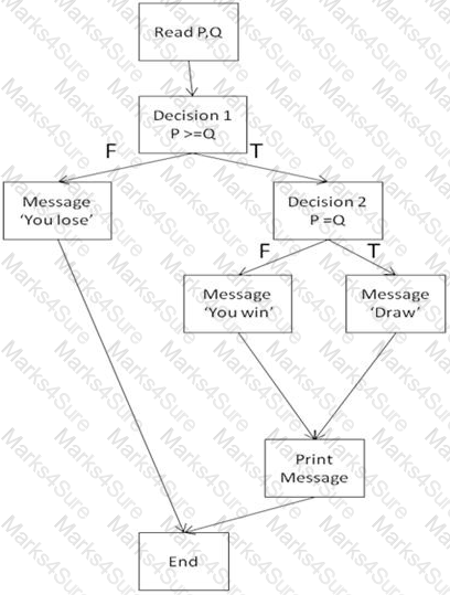 How many test cases are needed to achieve 100 per cent decision coverage?