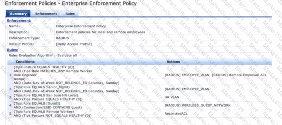 Based on the Enforcement Policy configuration, when a user with Role Engineer connects to the network and the posture token assigned is Unknown, which Enforcement Profile will be applied?