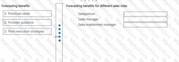 Which forecasting benefits should you explain? To answer, move the appropriate forecasting benefits to the correct sales role. You may use each forecasting benefit once, more than once, or not at all. You may need to move the split bar between panes or scroll to view content.