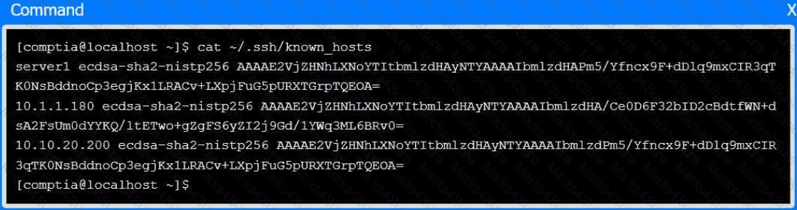 The administrator logs in to the company’s web server to check its configuration and sees the following output: